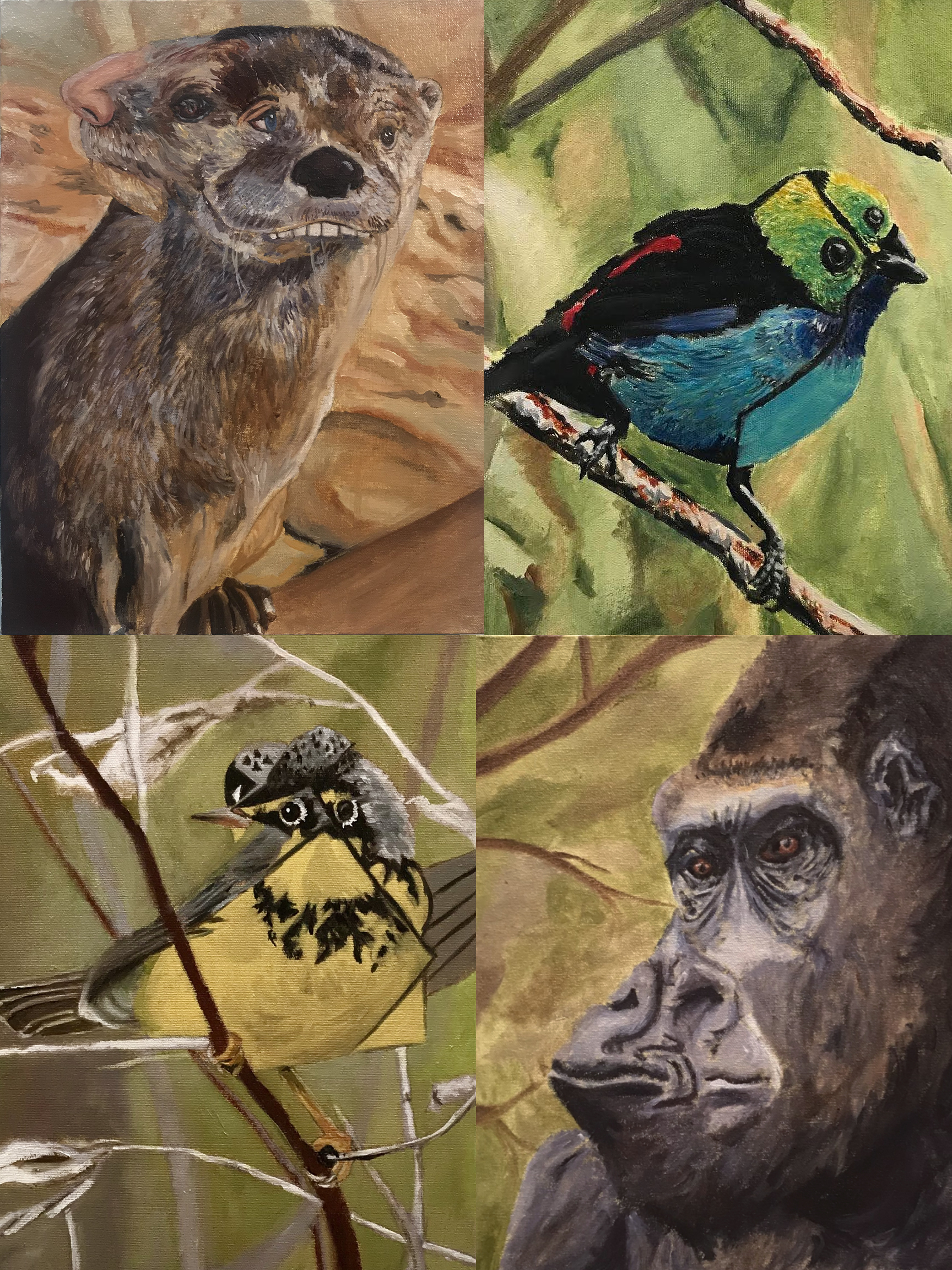 The one thing that all animals have in common is that their existence is tied to some kind of landscape (duh!). Even us human animals for that matter and even if that landscape is what we might call a ‘cityscape.’ But as I usually do in my blog, I digress. Here’s what I’m thinking for my contribution to this exhibition: I’ll paint more animals! The more I look at the four or five paintings I’ve done so far, the more I think that maybe the weirdness, that slow burn thing I mentioned earlier is an interpretation of how animals in the wild, or even in captivity are reacting to what humans are doing to their environment. I wasn’t planning to make work about Global Warming, or other human-caused catastrophes, because that work is being done by a lot of artists in many fields. Having said that, I think that maybe being human at this time in history it may be unavoidable to at least touch on it even if indirectly. That is unless you happen to be one of those–let’s call them–’Trumpy’ people who are in complete denial of science.