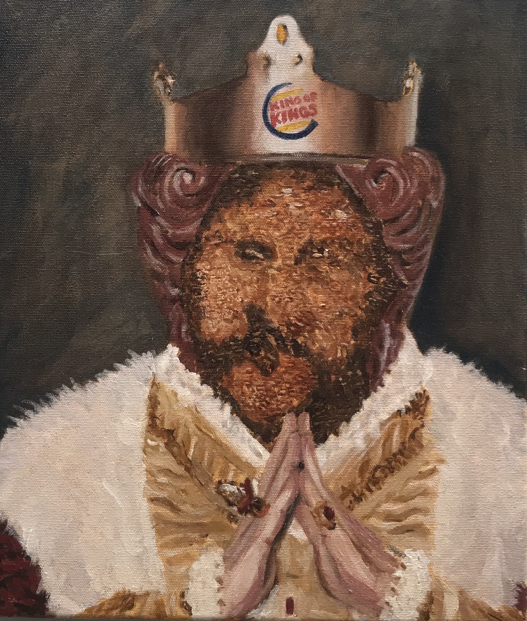 I also had an idea for a series of paintings based on the concept of pareidolia which is the tendency of human beings to recognize patterns, even if they’re not there. Like the Face on Mars, which inspired this painting entitled the King of Mars. I really like this one and it hangs in my upstairs hallway. The only other one I did was a painting that didn’t really work out based on the idea of seeing an image of Jesus on a piece of toast. The problem with this painting was that I thought I could mimic toast by dabbing paint on the canvas and in the end it didn’t read as toast. I like the concept though, but again it never really went anywhere because I didn’t know what else to do with pareidolia. I’d happily re-visit this idea though and maybe I will, who knows?