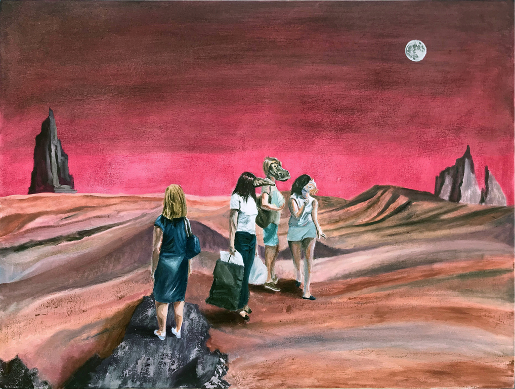Anyway, I was thinking about how before I started working in this manner, the idea of making 100 paintings in a year of any style would have been untenable. If you’ve been following my progress as a painter, you’ll know that I’ve done several series of paintings such as the They’re Ain’t No Moon in the Sky paintings, and the Menagerie paintings to name the two most successful series. But there have also been a few series that never really went anywhere. For example, there was a series of paintings I called the Panspermia series. If you don’t know what Panspermia is, it’s the discredited idea that as Wikipedia explains: “is the hypothesis that life exists throughout the Universe, distributed by space dust, meteoroids, asteroids, comets, planetoids, and also by spacecraft carrying unintended contamination by microorganisms.” And that this life likely exists throughout the Universe. It’s kind of the idea that Star Trek and other sci-fi uses to justify the fact that all the aliens are Humanoids. So I imagined some life forms based on combinations of humans and actual animals and put them on Mars, Venus, and who the hell knows where else? I think of these paintings are actually pretty successful, but it never really went anywhere.