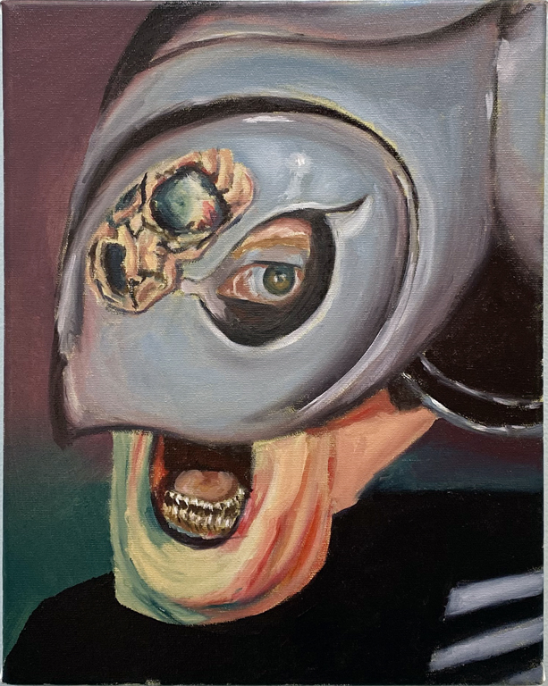 So why am I bringing this movie up? Well, last week an old friend of mine from junior high/high school days contacted me and suggested I do a series of paintings in my current style of characters from the movie. He figures there are enough fans on the Facebook group he runs that I could maybe sell them there. Of course, I’m always wanting to sell my work, but my biggest motivation to create paintings is interesting faces and imagery. And this movie has those things in spades. So, here is the first painting of what could become a little mini-series. This character is Winslow Leach–the Phantom himself, and I used a couple of photos as reference, one of his face after it was disfigured (the movie is based on Phantom of the Opera, as you can guess, so of course his face was damaged) and one with the helmet/mask he wore to cover it up. I’m pretty happy with the result, I have to say.