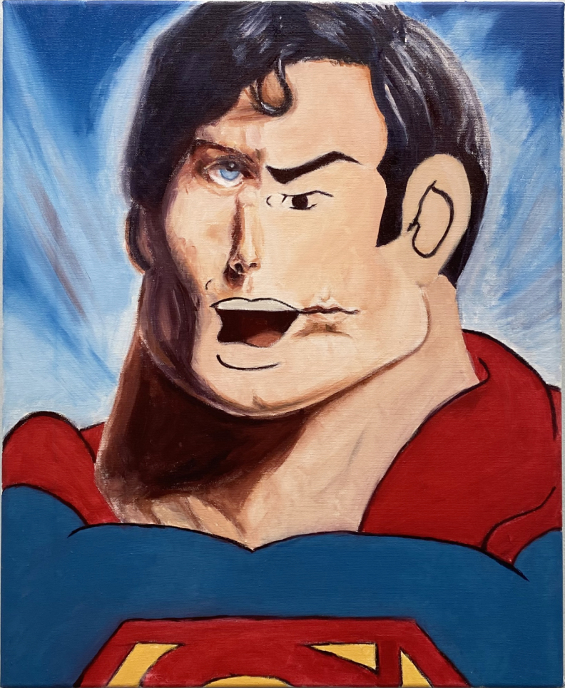 So maybe that’s the answer to my question? Maybe Superhero stories have been great all along and I’ve been missing out! I’ll just add one last thing: there was one Superhero I did like when I was a kid. I probably only bought a few of his comics over the course of my childhood, but I did buy some. That Superhero was a fine feller from a place called Krypton by the name of Clark Kent, aka Superman. Here is my painting of him. Can you tell which versions of this iconic character I’ve mashed up to create this?